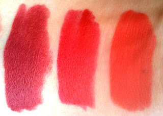 L to R: MAC Craving; All for Eve; Revlon Matte Strawberry Suede